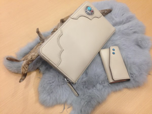 素材:ヌメ 図案:ボタン ダブルレース飾り |